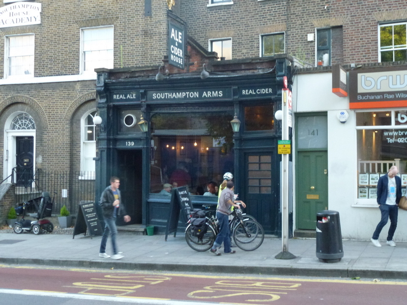 Having neglected to buy myself one of the awesome-sounding kimchi burgers at Camden we jumped on the London Overground at the next door Kentish Town West station and went one stop north to Gospel Oak for what was the fourth venue on the Un-Real Ale Festival itinerary, the excellent Southampton Arms, NW5. I’ve been to the Southampton before, its wide selection of real ales, quality kegs and unusual ciders (the latter particularly impressive for London) never failing to impress.