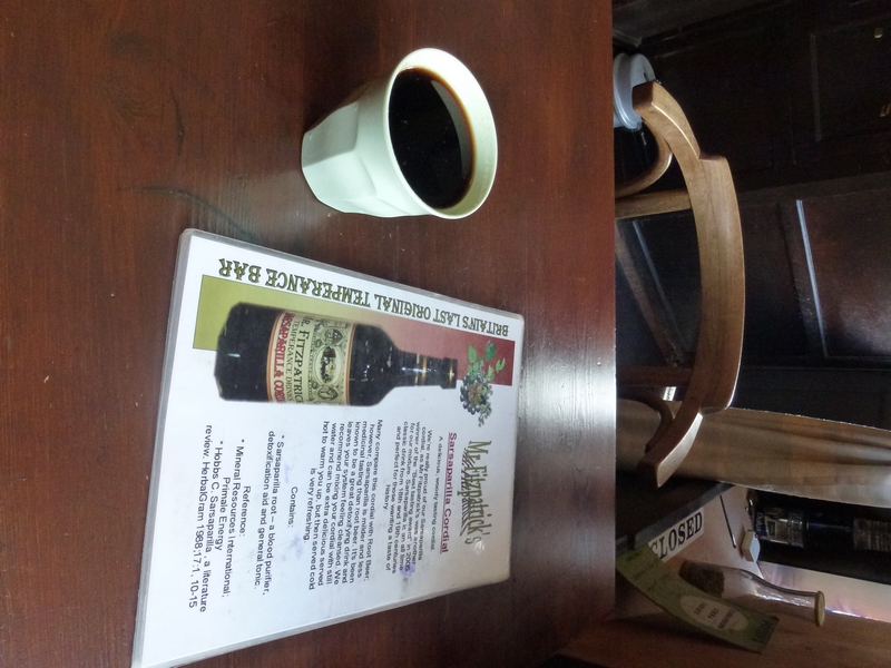 Sarsaparilla and dandelion and burdock are only two of the many temperance cordials available at Mr Fitzpatrick’s. Others such as the threateningly named, but actually raspberry-infused, blood cordial and lemon & ginger were also on the menu, along with another dark cordial (and one I’d never heard of previously) Mr Fitzpatrick’s Black Beer and Raisin, a bottle of which I took home for later consumption.