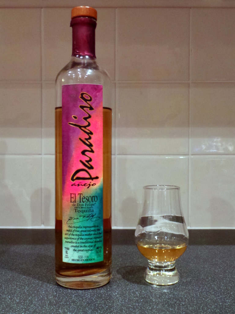 It’s dram number five and another trip to the back of the cupboard is in order. This time, it’s that equally revered and reviled of spirits: tequila. But this one’s not any old rough agave spirit. This is one of the brands that kicked off the current vogue for quality tequila, El Tesoro Paradiso (40%).