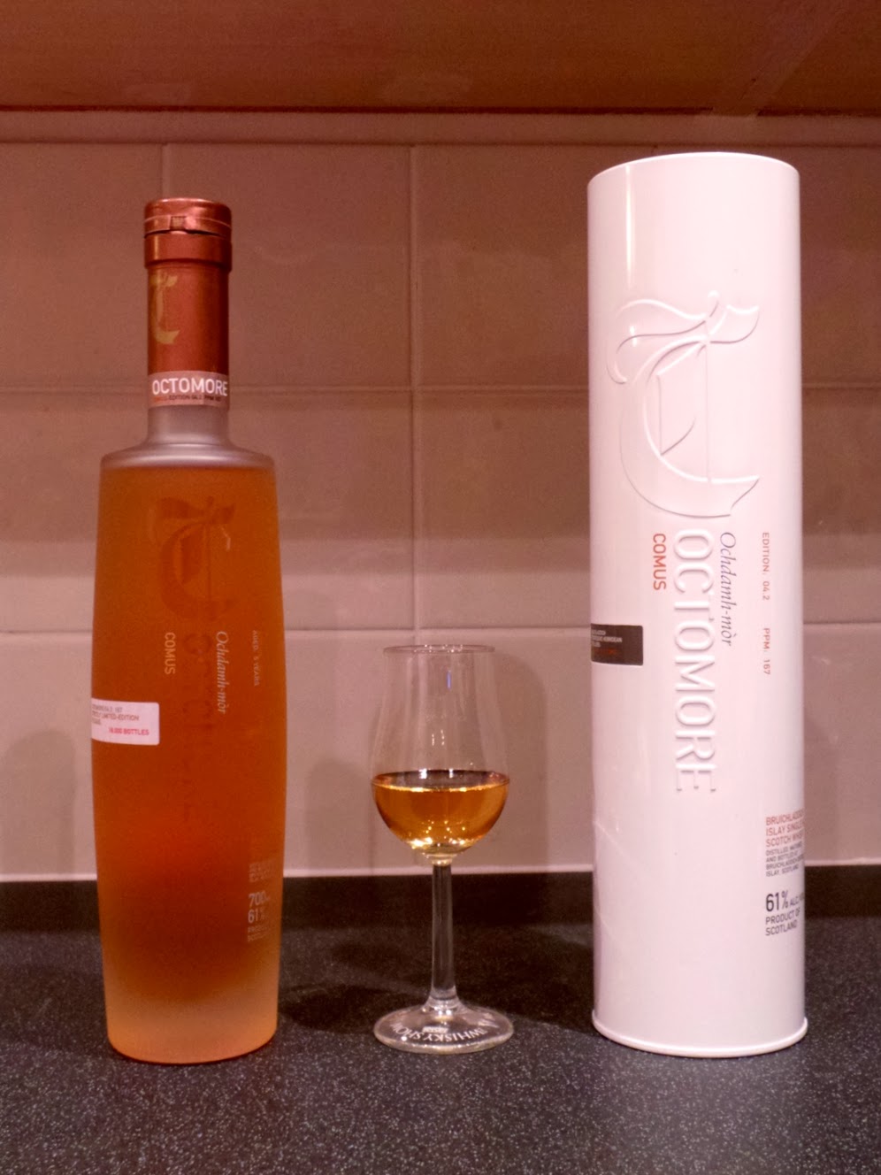 With Christmas duties and the inevitable post festive lurgy out of the way it’s finally on to number eleven and an excuse to uncork another of my stash. This time the peatiest whisky in the world, namely Islay distillery Bruichladdich’s Octomore. Or more specifically Octomore 4.2 Comus (61% ABV), with final maturation in a cask that previously held rich, sweet, Botrytis-enriched Sauternes wine.